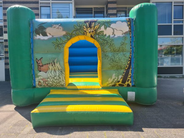 Breng avontuur naar je feest met dit Jungle Springkussen! Met levendige kleuren en speelse jungle-afbeeldingen, is dit springkussen perfect voor elk kinderevenement. Het biedt een veilige en opwindende speelruimte voor de kleintjes. Ideaal voor verjaardagsfeestjes, buurtfeesten en andere speciale gelegenheden. Het springkussen is eenvoudig op te zetten en is gemaakt van duurzaam materiaal voor langdurig gebruiken geleverd met een blower en verankeringsmateriaal. Al onze springkussens voldoen de aan alle veiligheidsnormen. Huur de Jungle Jump Springkussen vandaag nog en maak van je evenement een onvergetelijke ervaring voor alle kinderen!